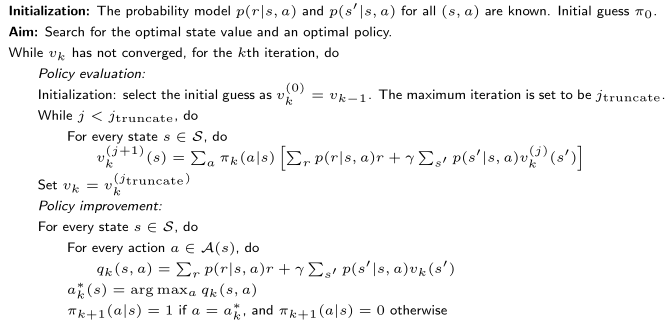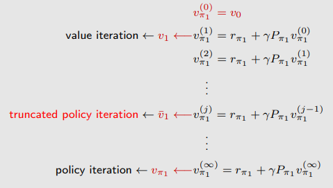 截断策略迭代算法(truncated policy iteration algorithm) 执行 有限次迭代(例如 j 次)。从 j 到 ∞ 的剩余迭代将被截断。