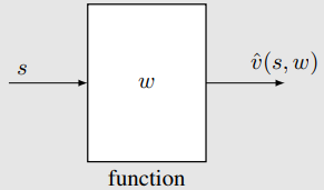 例如: s→ϕ(s)→ϕT(s)w=v^(s,w)